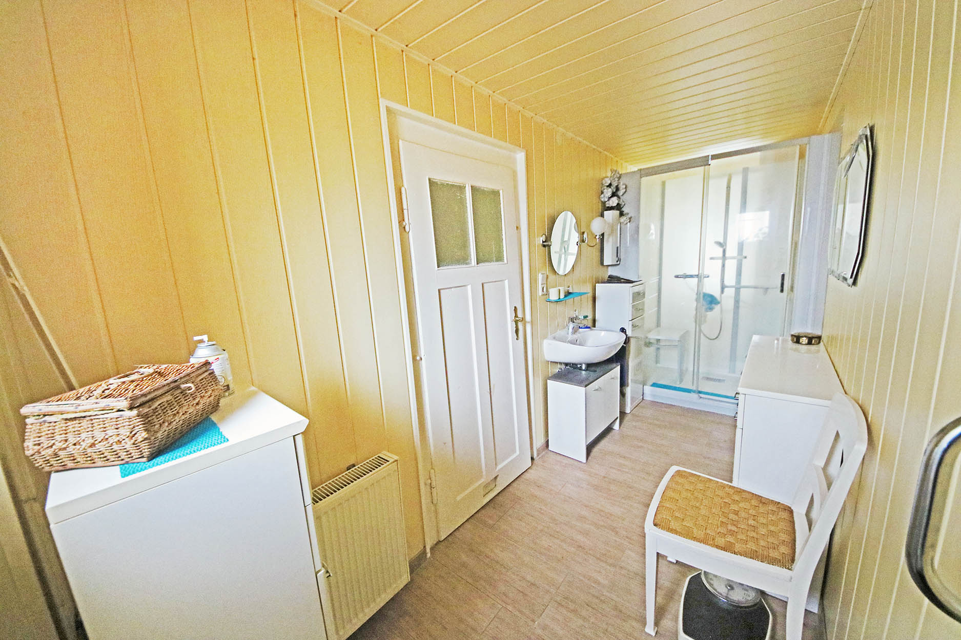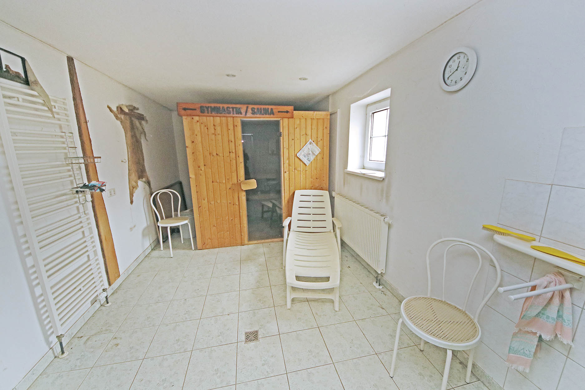 - Nebengelass 2 (Durchgang zum Herrenhaus möglich) mit Hauswirtschaftsraum, Heizraum, weiteren Räumlichkeiten, beheiztem Büro und Bad mit Sauna - ca. 1990 saniert